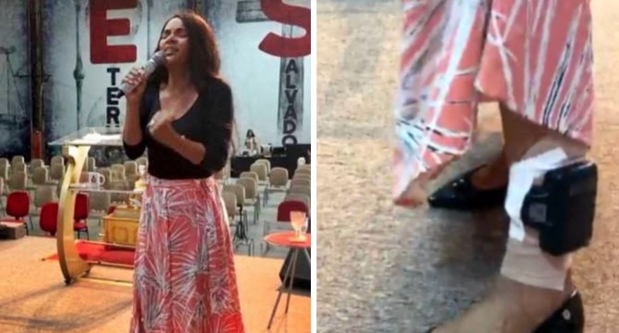 Na transmissão, Flordelis está cantando no púlpito de uma igreja em que é pastora em São Gonçalo na Região metropolitana do Rio. Em determinado momento da música, ela pede que seja focalizado seu tornozelo. Levanta então a saia que usava e mostra o aparelho, enquanto canta: “Isso não comprova nada. Ela não matou José, isso é história inventada”.